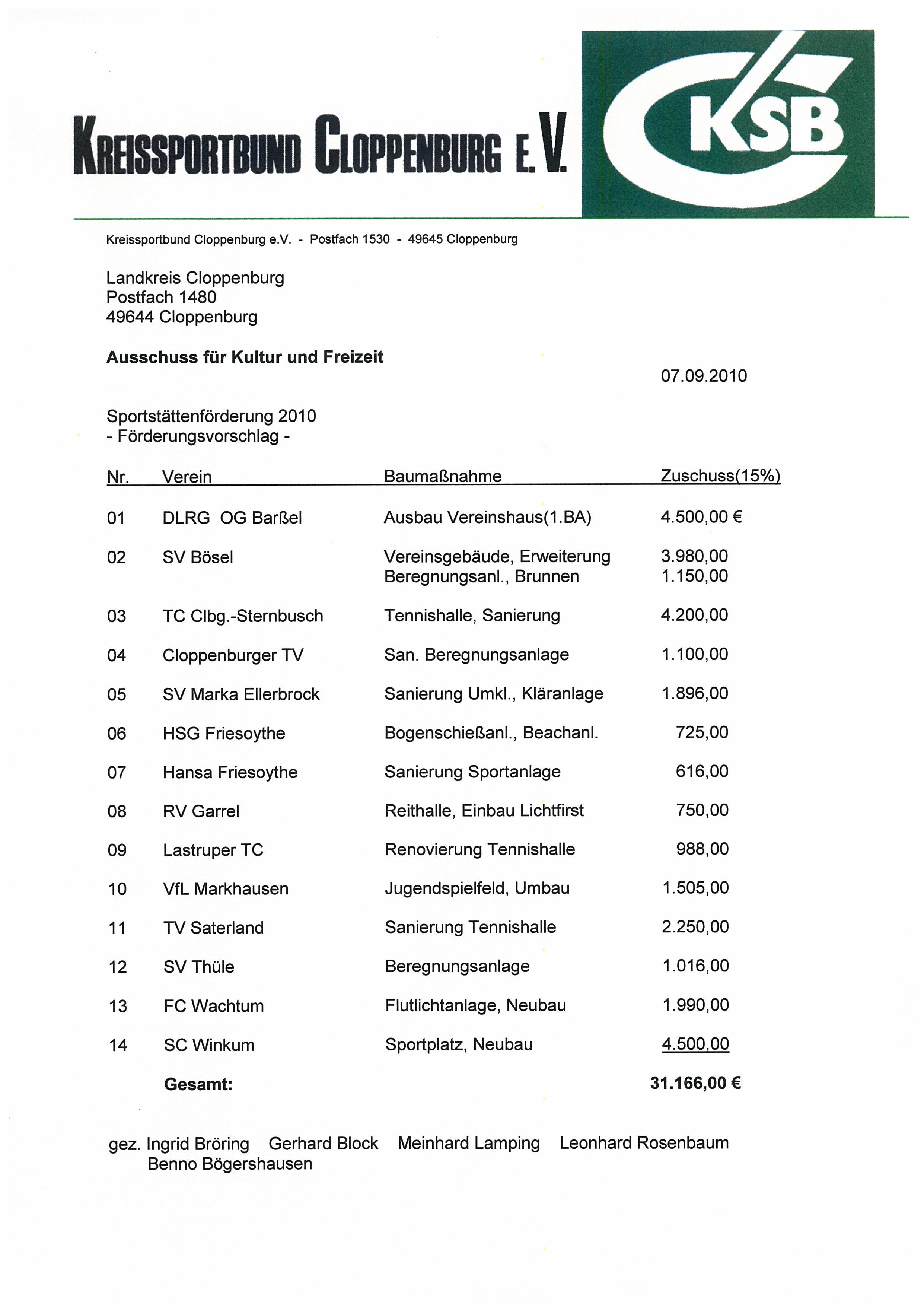 Beschluss: einstimmig beschlossen | V-KUL/10/006 | |